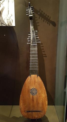 Originale Laute von Michael Gartner (der Korpus ist von 1524 und einer der ältesten), umgebaut von A. F. Mayer (1723) in eine 11 chörig d-Moll Laute, Salzburg Museum (MI 1087)