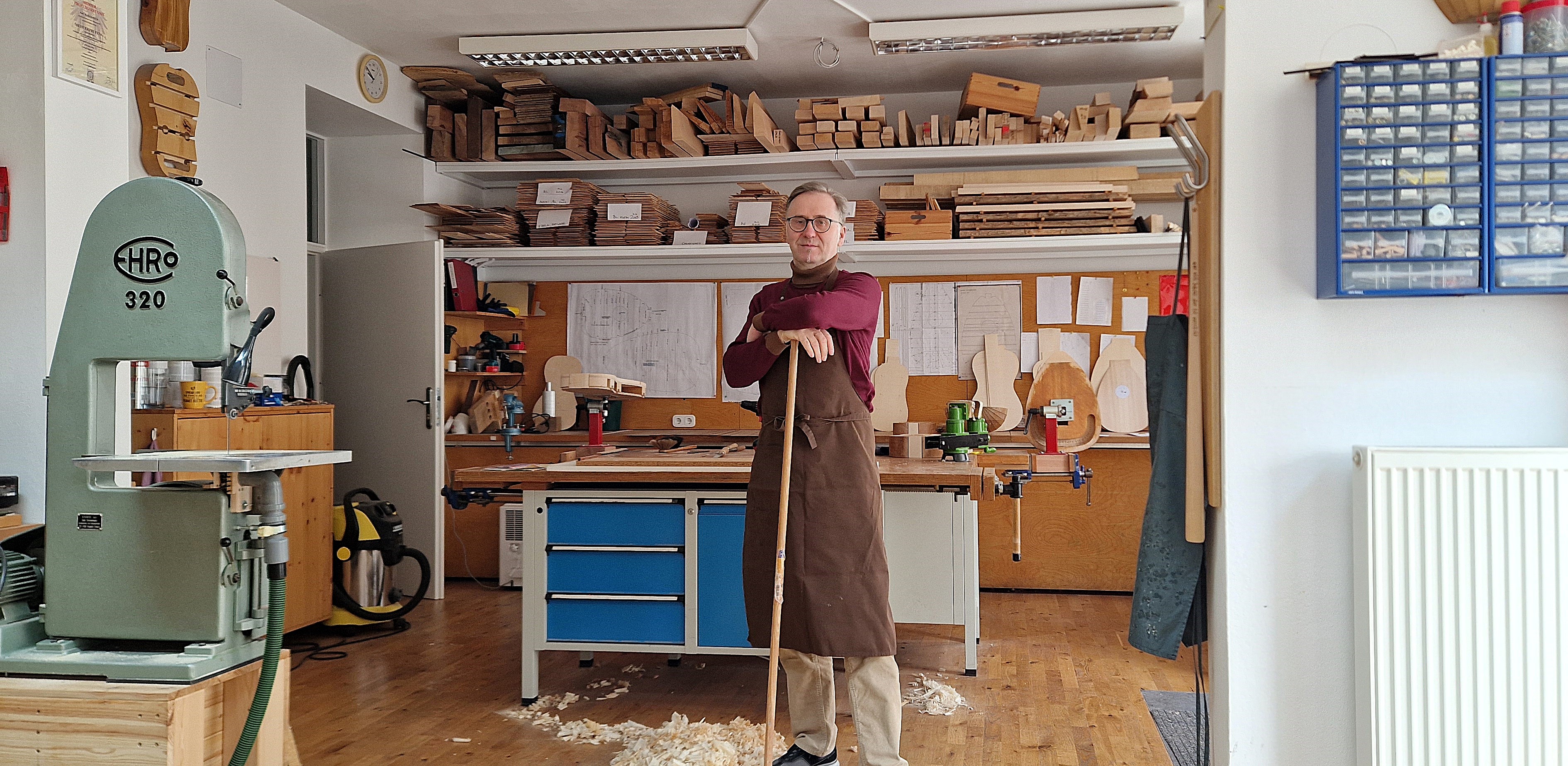 Ich beschäftige mich seit meinem 15. Lebensjahr beruflich mit Hölzern und deren Eigenschaften. Eine fundierte Ausbildung in Holzbearbeitung, Materialkunde für Holz, Statik, Kunstgeschichte, Farben-, Formen- und Proportionslehre war in meiner ersten 5-jährigen Ausbildung inbegriffen. Mit 22 Jahren startete ich meine zweite Ausbildung zum Saiten- und Streichinstrumentenerzeuger. 1999 beendete ich diese mit einem Meisterbrief. Bereits in meiner Ausbildung empfand ich großes Interesse an der riesigen Vielfalt der Renaissance- und Barockzupfinstrumente, deren handwerkliches „High End“ und im Besonderen deren obertonreiche Klangwelten. Diese Faszination ist für mich bis zur Gegenwart ungebrochen. Die Spezialisierung auf den Neubau in diesem Gebiet fand nach meinem Meisterbrief 1999 statt.