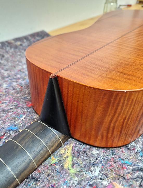 Hals und Wirbelbrett mit Ebenholz furniert
