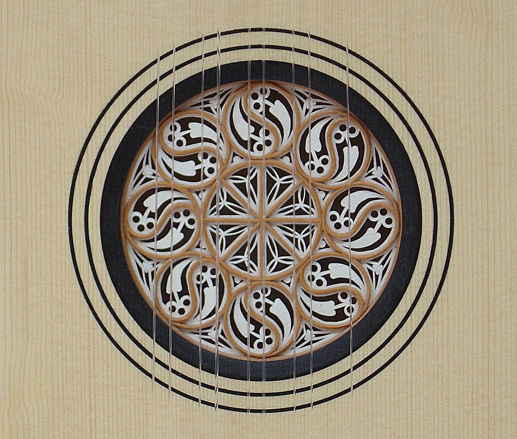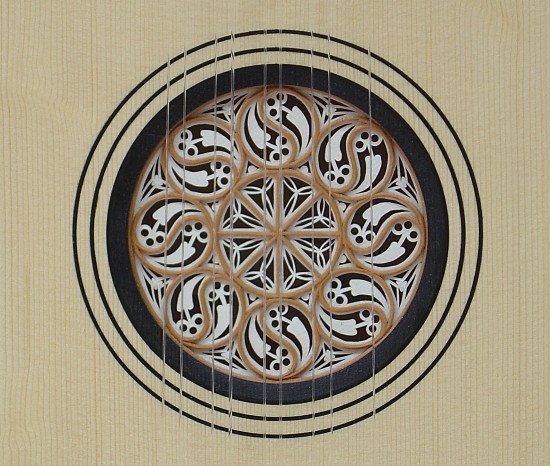 Schalllochrose aus Birne und Pergament