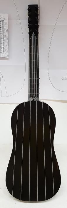 Korpus aus Riegel- oder Vogelaugenahorn, indischem Palisander oder nach individuellen Kundenwünschen mit und ohne Adern