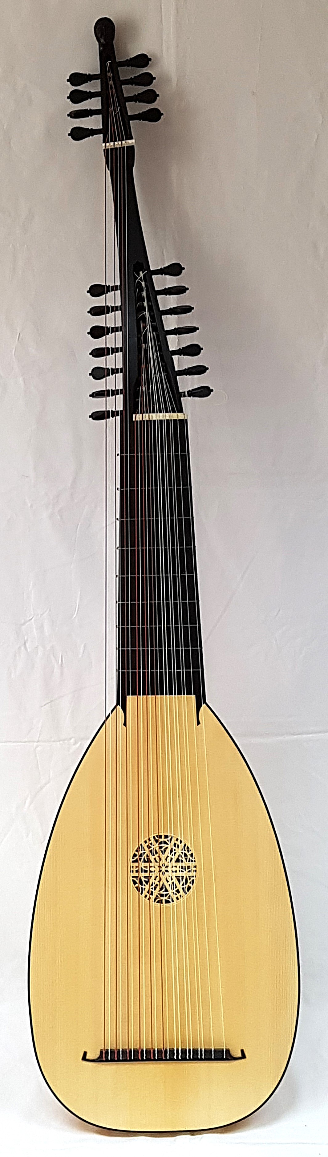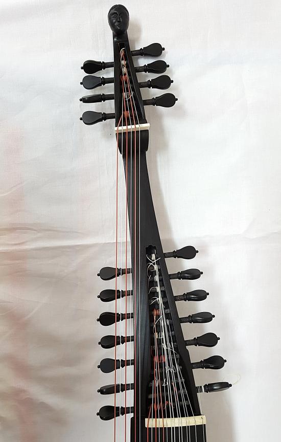 Schwarz gebeizter theorbierter Wirbelkasten