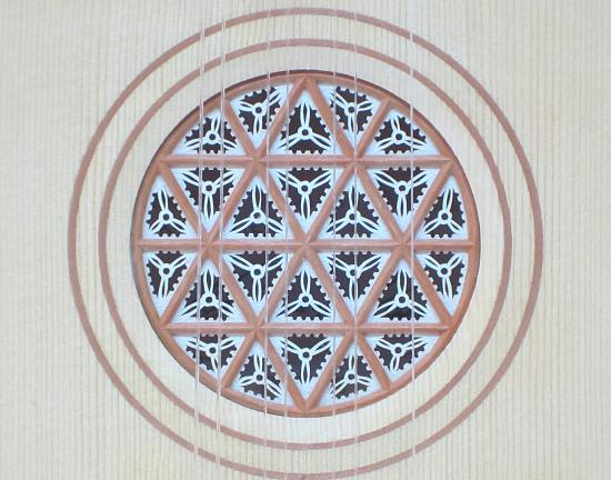 Schalllochrose aus Birnenholz und Pergament
