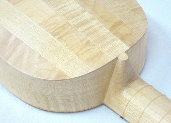 Korpus aus Riegel- oder Vogelaugenahorn, Birne, Pflaume-, Walnuss-, Kirschholz oder nach individuellen Kundenwünschen mit und ohne Adern