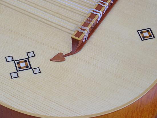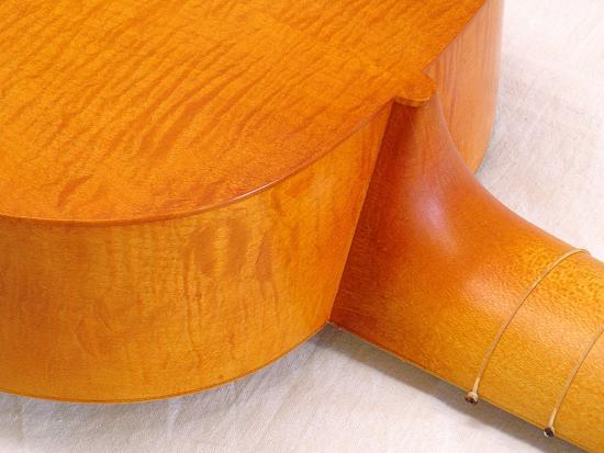 Korpus aus Riegel- oder Vogelaugenahorn, Elsbeere, Zwetschken(Pflaumen)-, Walnuss-, Kirschholz oder nach individuellen Kundenwünschen mit und ohne Adern