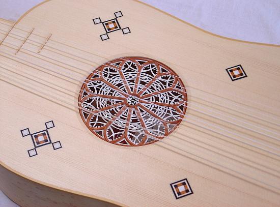 Schalllochrose aus Birne und Pergament