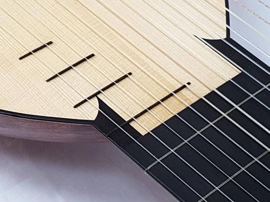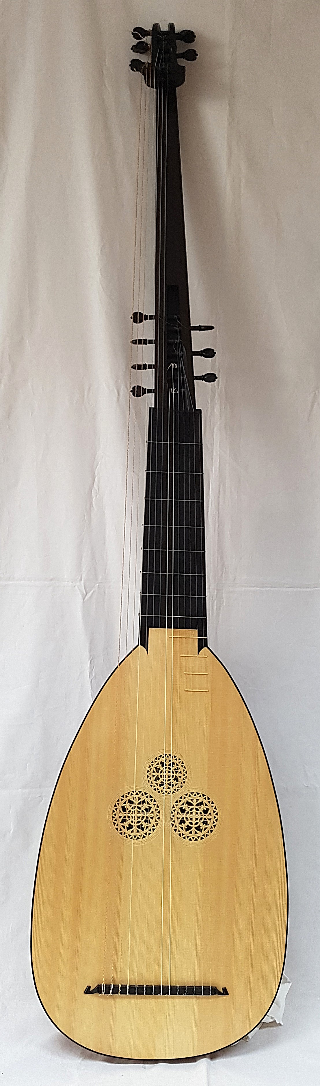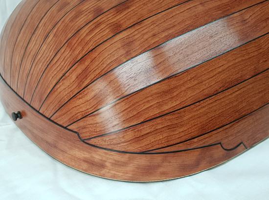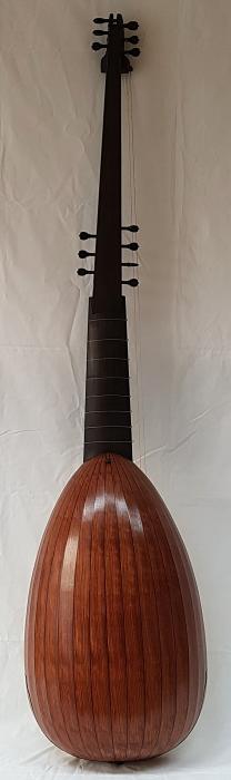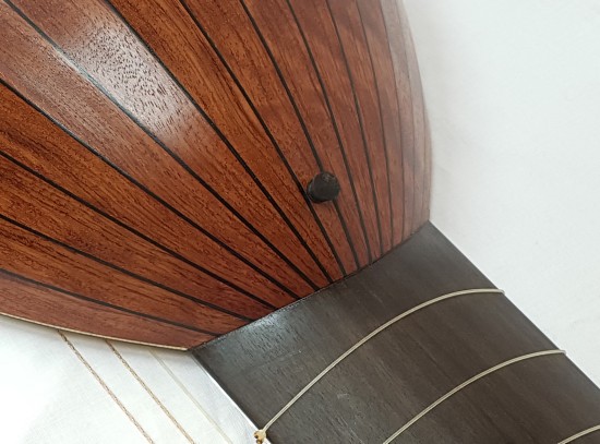 body with 15 (or 27 ribs) in curly or birds-eye maple, indian rosewood, plum, yew, ebony or according to individual customer preferences