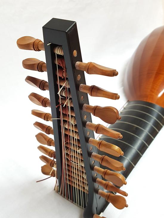 body with 11 ribs in curly or flecked maple, yew, indian rosewood, plum or according to individual customer preferences