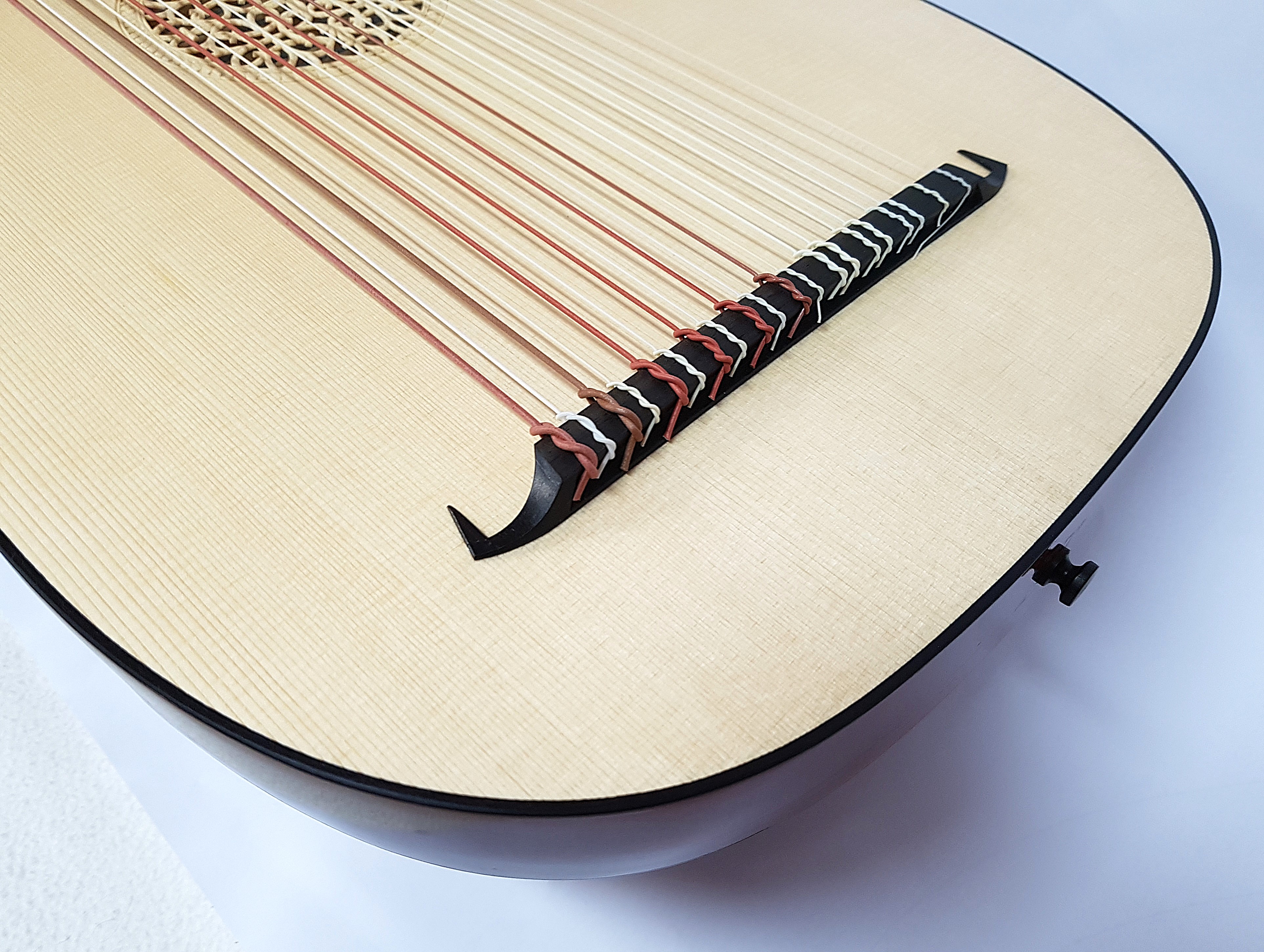 body with 19 ribs in fir wood, curly or birds-eye maple, plum, yew, indian rosewood or according to individual customer preferences with or without purfling
