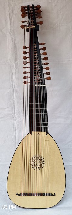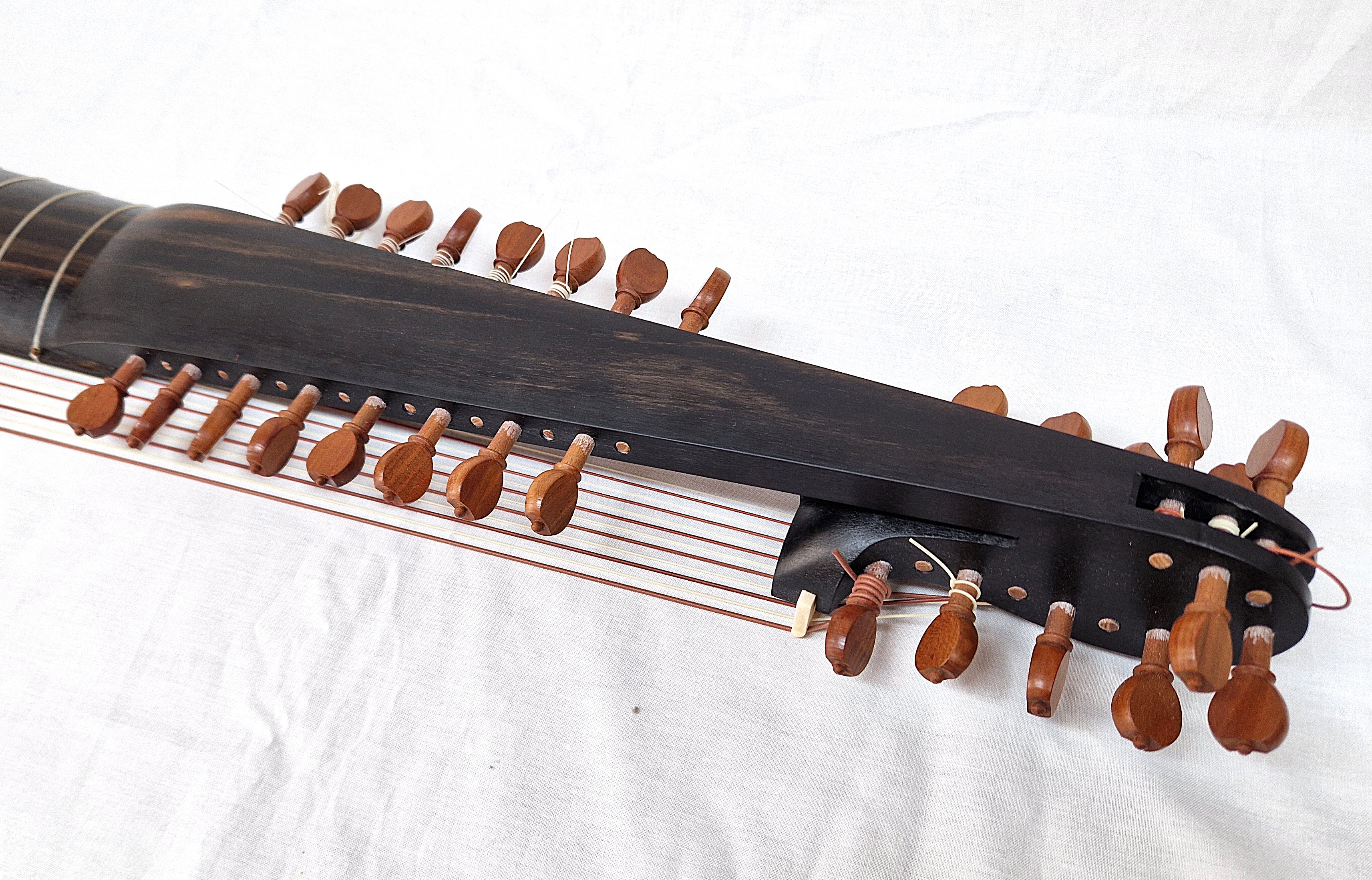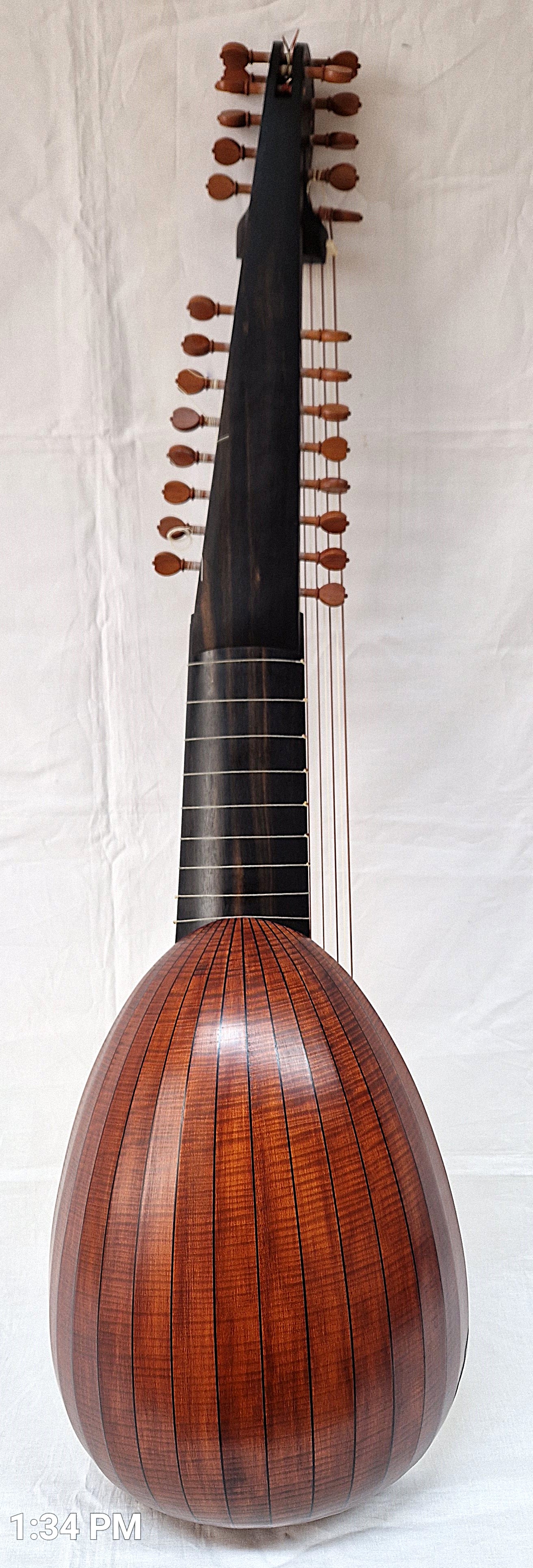 body with 15 ribs in curly or birds-eye maple, indian rosewood, plum, yew, ebony or according to individual customer preferences with or without purfling
