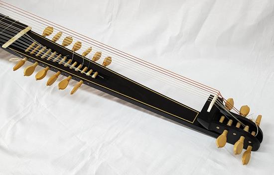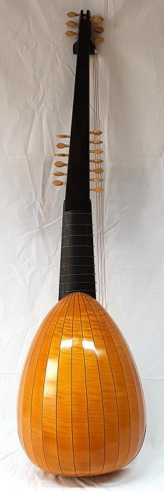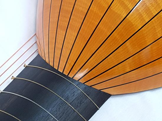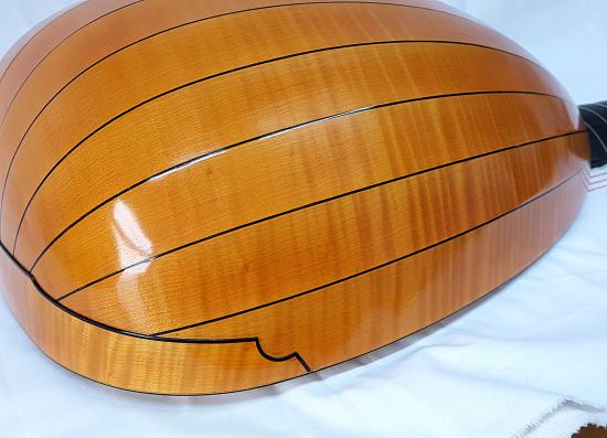 body with 13 ribs in curly or birds-eye maple, indian rosewood, plum, yew, ebony or according to individual customer preferences with or without purfling