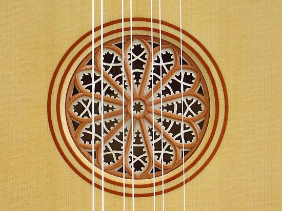 spruce soundboard with soundhole purfling and