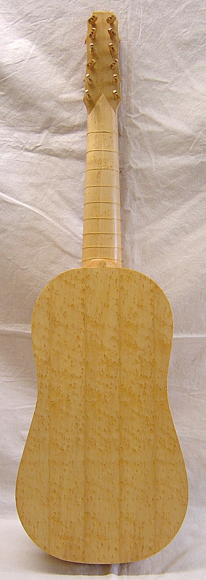 body in curly or birds-eye maple, rosewood, plum, walnut, cherry, pearwood or according to individual customer preferences